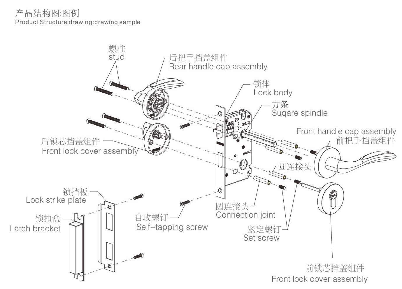 6擰緊螺釘,安裝扣板及扣盒,對齊鎖體,應使鎖舌與之配合順暢,擰緊螺釘(如上圖:H)。