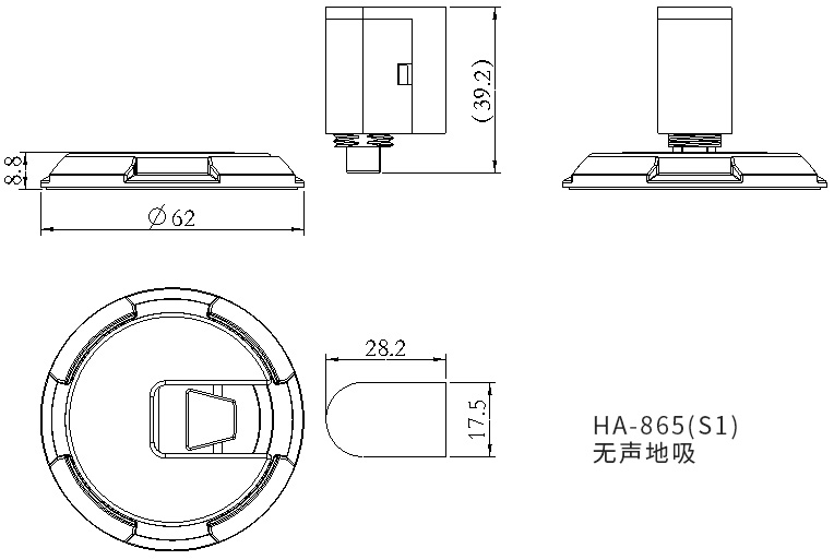 匯泰龍HA-865無聲地吸采用機械式固定門扇,當門吸頭進入門吸座體的時候,帶動底座的旋轉,底座“緊緊摟住”門吸頭,達到停門功能。