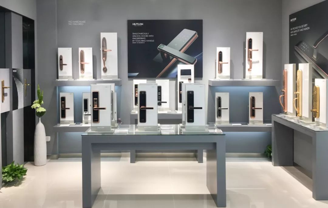 匯泰龍智能鎖體驗(yàn)區(qū),簡(jiǎn)潔的幾何線條,突出產(chǎn)品的科技感與極致的視覺感受,讓智能鎖的類目屬性從家居產(chǎn)品“回歸”智能數(shù)碼產(chǎn)品,更為吸引年輕消費(fèi)群體以及追求高生活品質(zhì)的高端人群。
