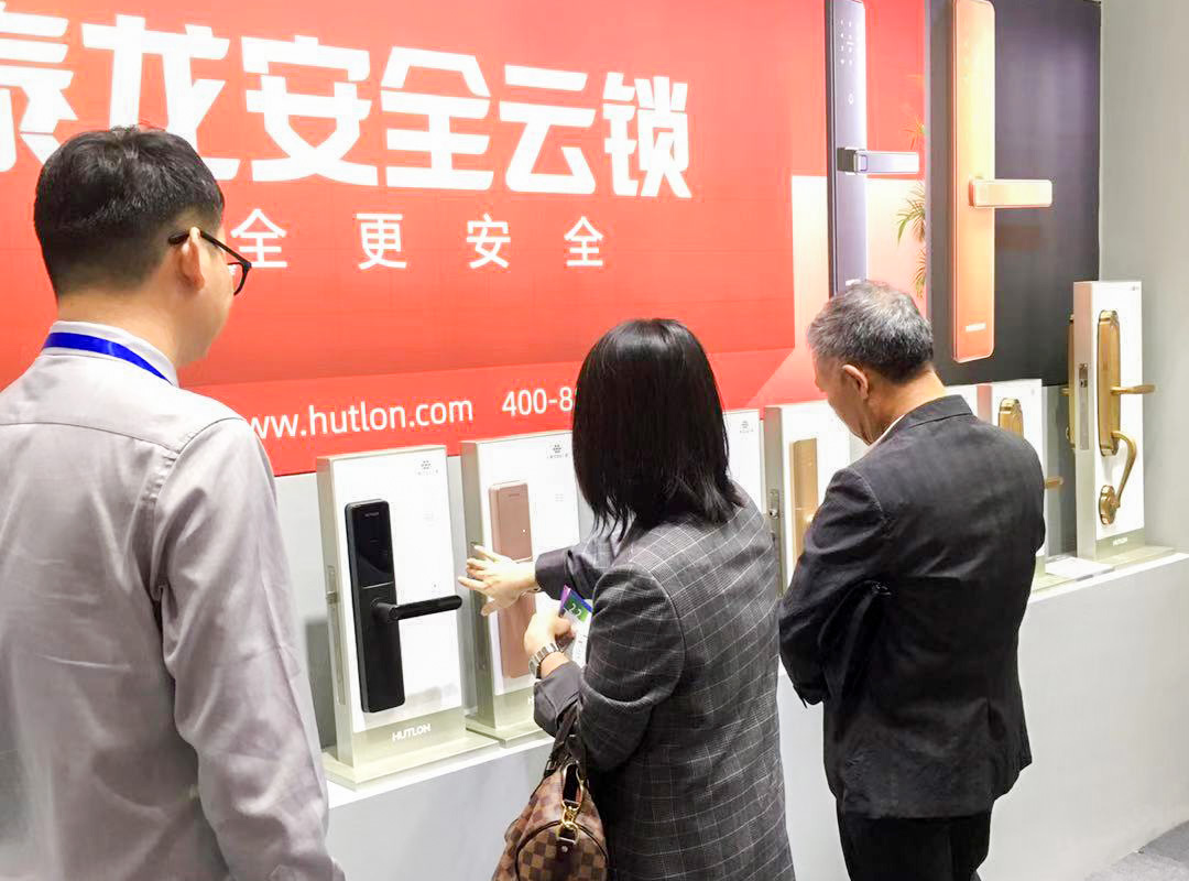 匯泰龍安全云鎖展區(qū)里,智能門鎖外觀琳瑯滿目,豪華別墅智能鎖、簡約現(xiàn)代智能鎖、張揚個性的智能鎖應有盡有。