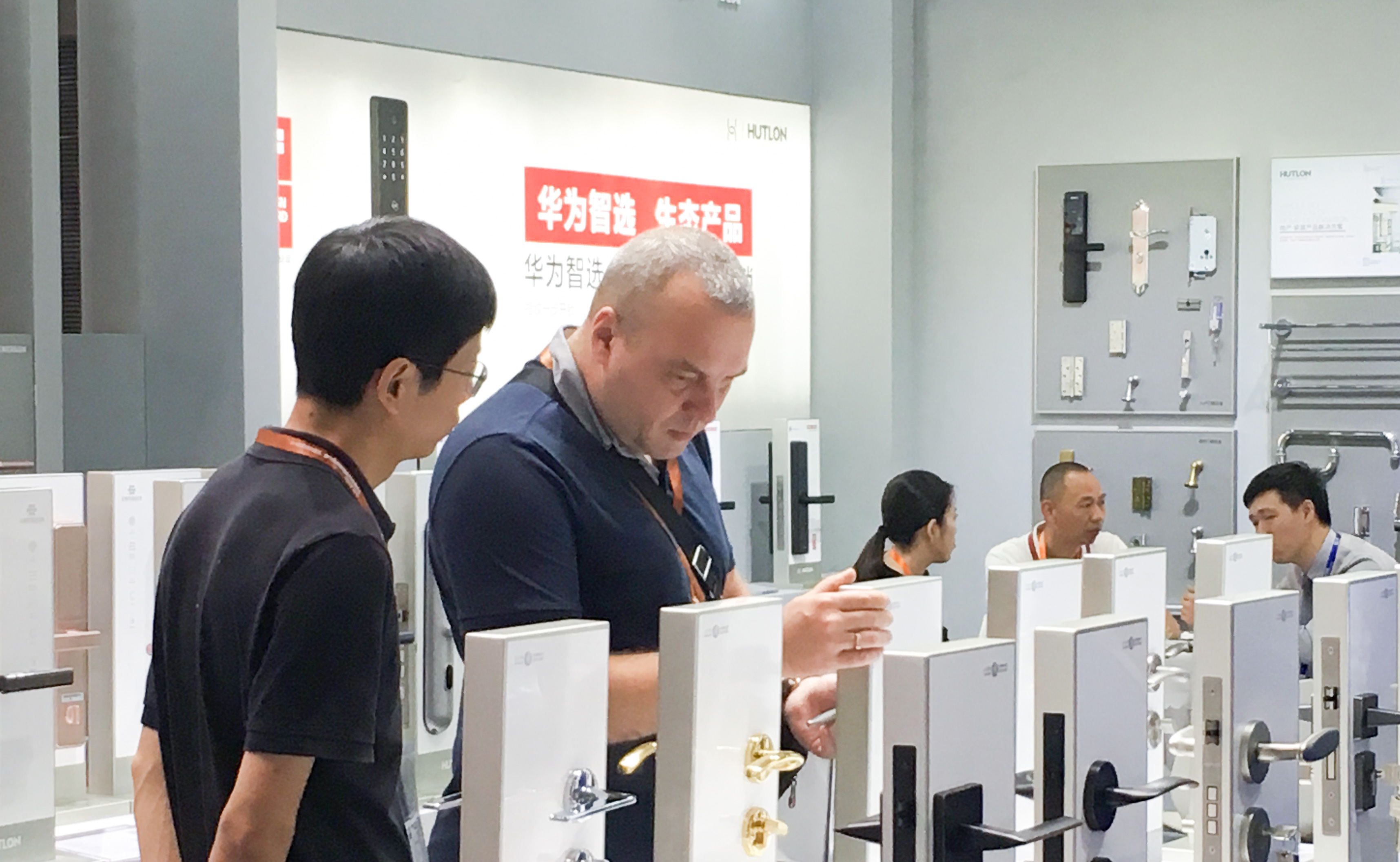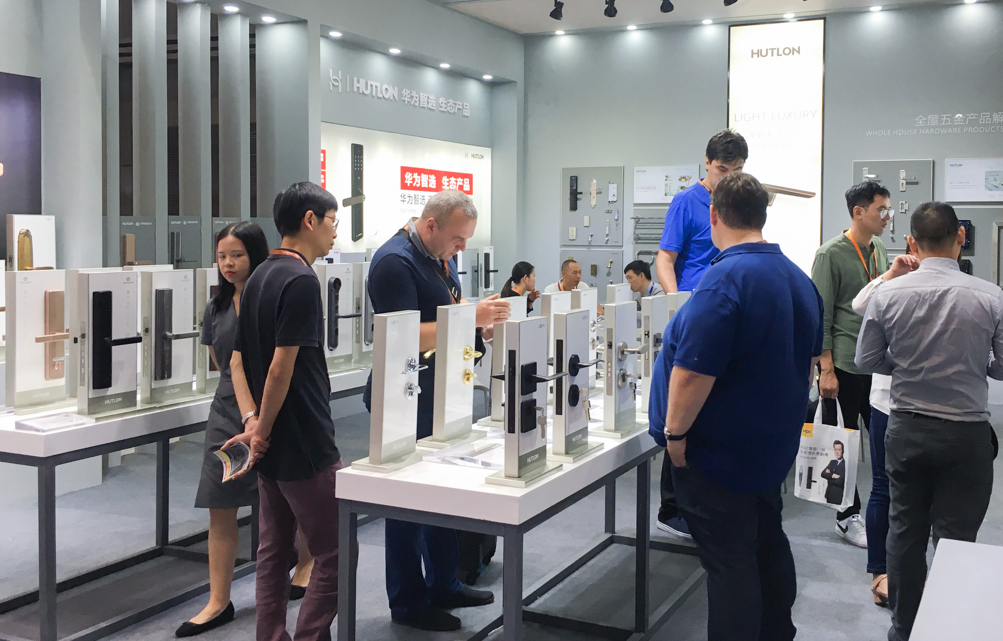 科技風格調(diào)的匯泰龍展館憑借“全屋五金解決方案”理念與案例、數(shù)十款安全云鎖、生活五金產(chǎn)品,在展會上“吸睛無數(shù)”,眾多潛在合作伙伴、外國商家競相了解、洽談。