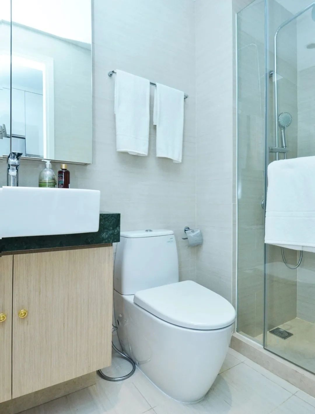 裝修時,強烈建議用玻璃、薄墻、隔水窗簾等隔開淋浴的區域,做干濕分離。