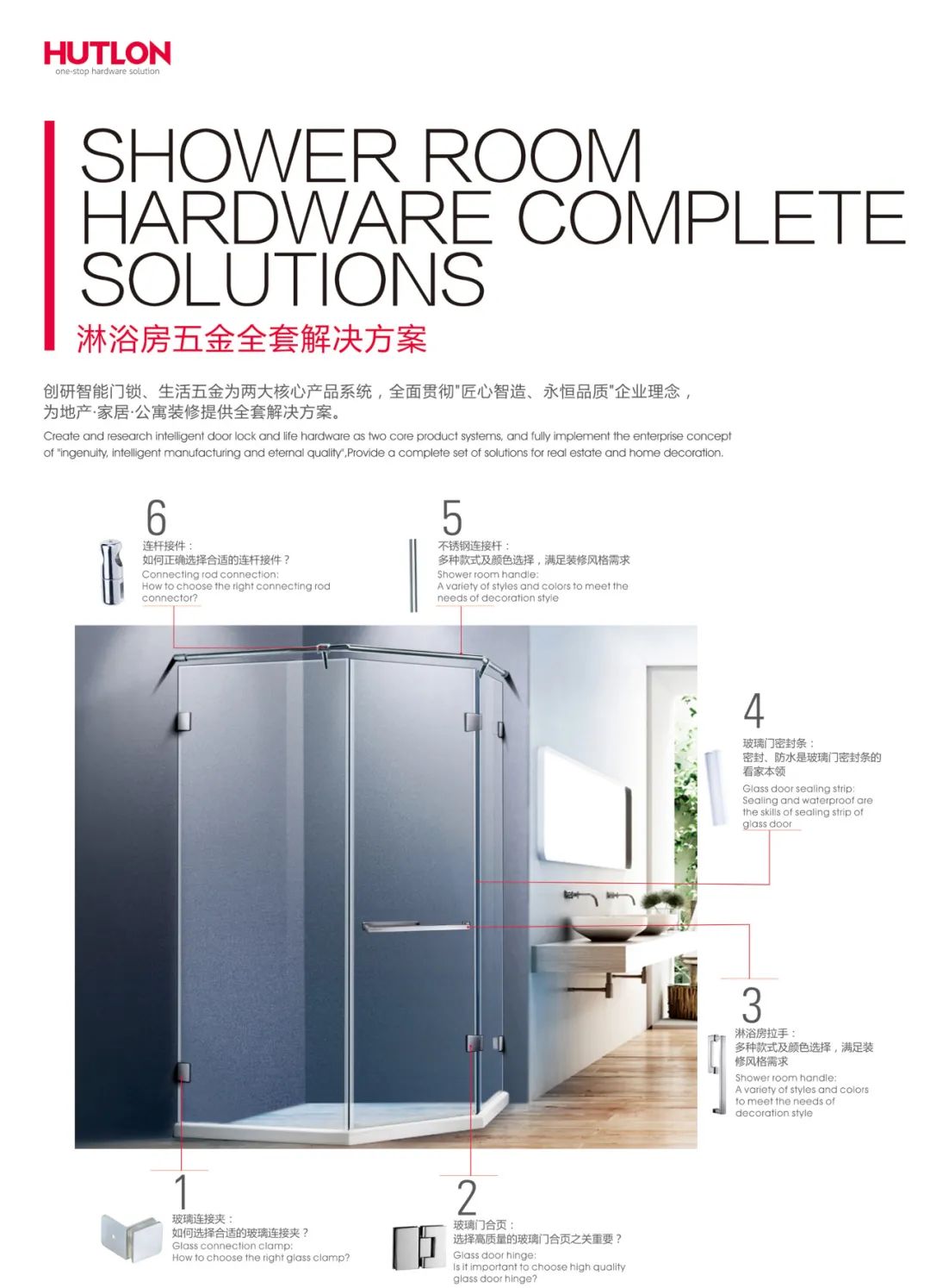 匯泰龍玻璃門合頁、玻璃門連接夾、連接桿件相互搭配使用,滿足多種角度能滿足整體淋浴房的組裝需求。