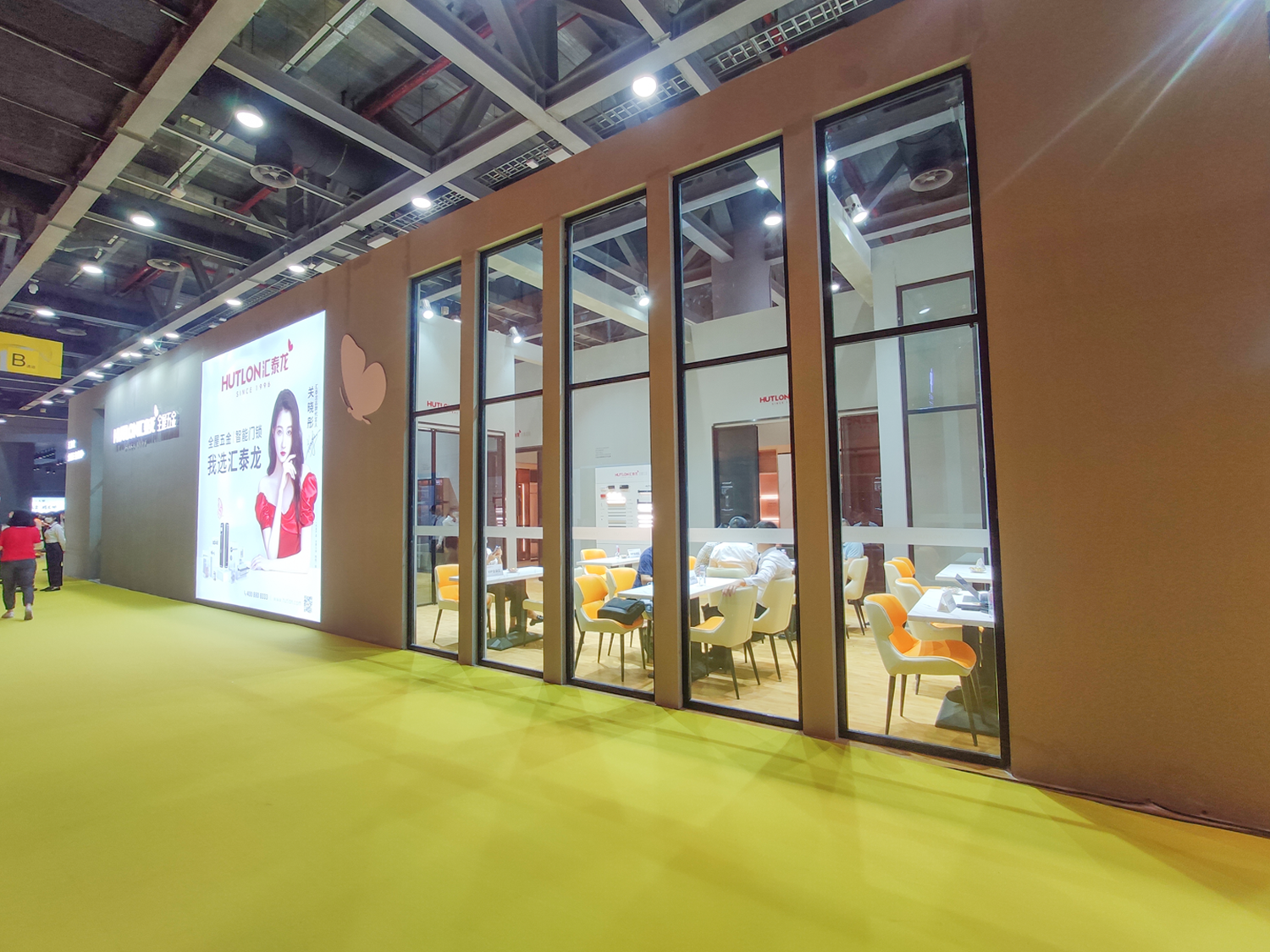 匯泰龍全新品牌代言人關曉彤形象廣告,首次在展會中亮相,與匯泰龍展區高端、極簡的中性灰主色相互映襯,成為展館的一大亮點,吸引無數客商駐足并入內參觀。