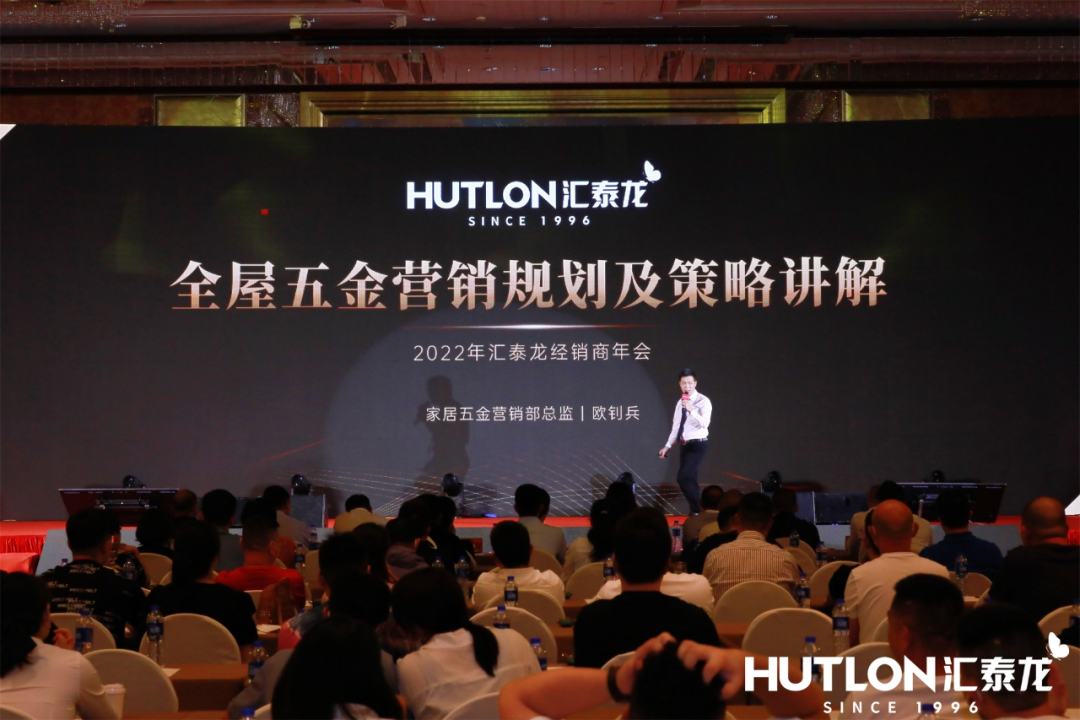 年會的壓軸,匯泰龍總裁陳鴻填發表《蝶變青春,逆勢飛揚》主題演講。雖然疫情持續,經濟下行,原材料上漲等不利因素涌現,但逆勢之下,勇者破局。陳總從品牌戰略、產品戰略、推廣戰略、營銷戰略四大維度,闡述破局關鍵。基于品牌戰略升級,匯泰龍將繼續以高舉高打之姿,占領品牌高地:在全屋五金丨智能門鎖的基礎上,計劃開拓更多相關產品品類,為更多家庭帶來高品質家居產品。匯泰龍進一步落實傳統媒體+互聯網+新媒體+展覽館+設計師的融媒體推廣戰略,2022年,已開啟央視廣告、高炮廣告的投放,加大力度打造線上宣傳矩陣,增加專業展會的參展,發布年度品牌福利活動,打造大聲量的品牌宣傳,提升品牌知名度,為市場賦能,彰顯品牌實力。