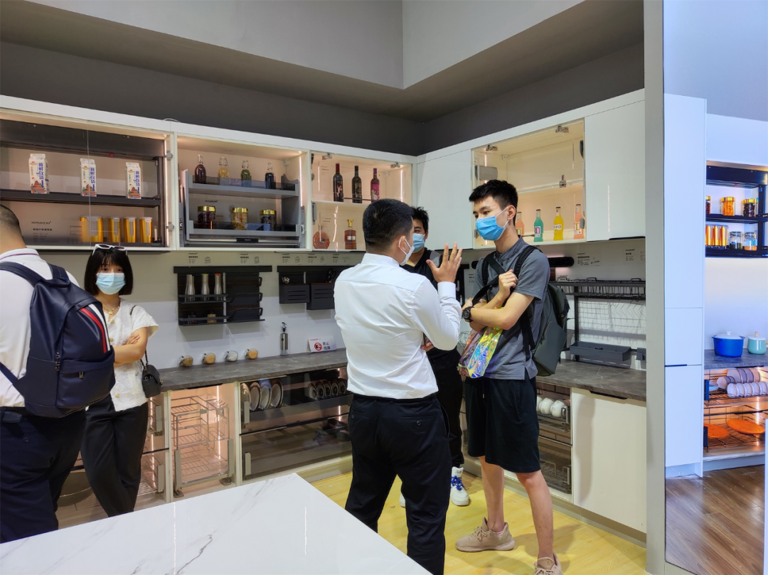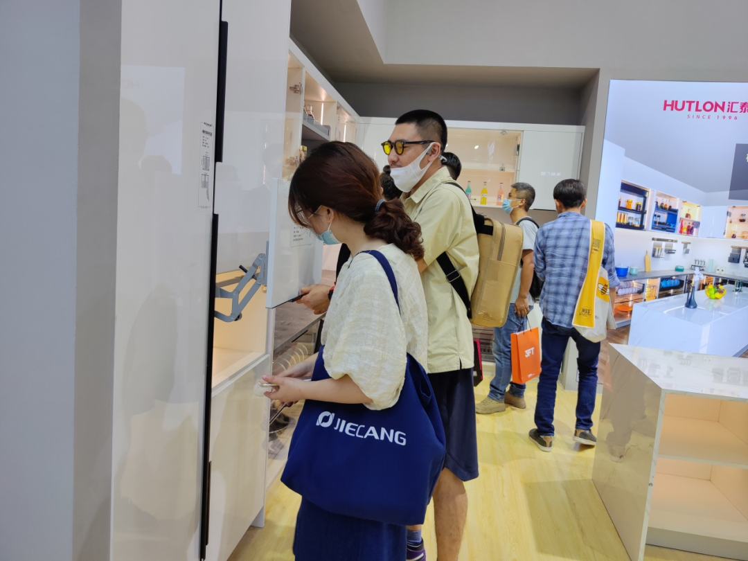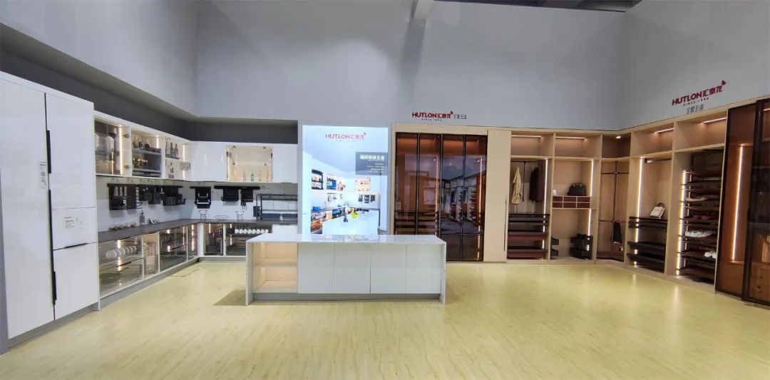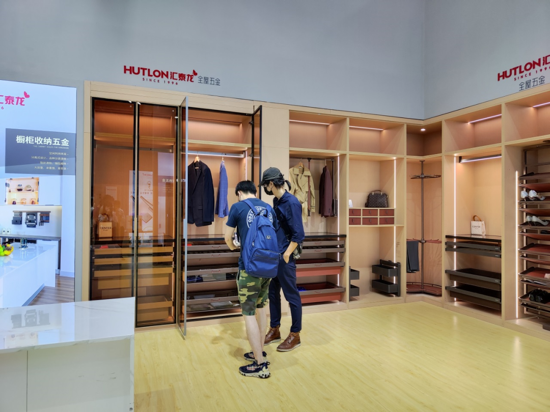 進入展館首先到達匯泰龍定制五金沉浸體驗專區。匯泰龍選取家居生活中,人們最為關注的櫥衣柜收納、智能五金,在展館中1:1搭建還原廚房、衣帽間等家居場景,打造理想家居的樣板,帶來沉浸式觀展體驗。