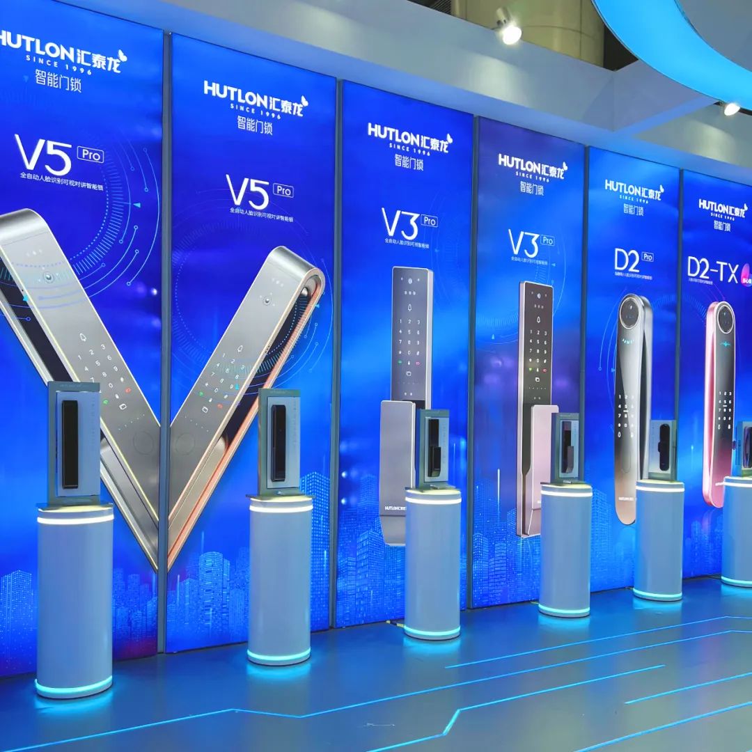 本次建博會,匯泰龍智能門鎖獨(dú)立開設(shè)展。匯泰龍智能門鎖展館以“云安全”為核心,采用全新形象獨(dú)立出展,極簡白搭配科技藍(lán)燈光,整個(gè)展館如云端的太空站。