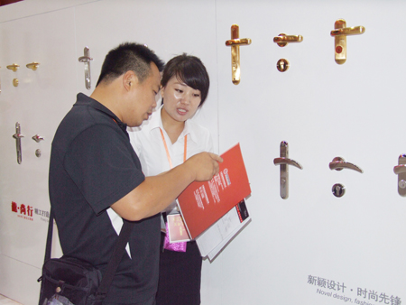 在每一個(gè)系列的產(chǎn)品前,公司都配備了一名專業(yè)的工作人員。這些匯泰龍工作人員具備五金衛(wèi)浴行業(yè)深厚專業(yè)知識,在現(xiàn)場對產(chǎn)品的設(shè)計(jì)、材質(zhì)、性能、優(yōu)點(diǎn)等都作了詳細(xì)的講解。在匯泰龍新型電子門鎖展區(qū),工作人員現(xiàn)場演示了門鎖的操作方法,吸引了眾多客商的目光。