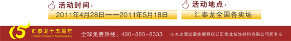 相關文章:匯泰龍五金.衛(wèi)浴15周年五一感恩鉅惠(一) 匯泰龍五金.衛(wèi)浴15周年五一感恩鉅惠(二)