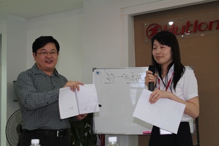 王老師在培訓(xùn)一開始首先針對“《人性化溝通》課程的十三條前提假設(shè)”和全體學(xué)員作了討論和分析,提出十三條改善和提升溝通技巧的黃金法則,同時采取游戲互動的方式檢測兩兩人小組之間的溝通效果,讓在場的所有學(xué)員從簡單的游戲中對平時工作的溝通難題迎刃而解。本次的溝通培訓(xùn)內(nèi)容涵蓋:上級與下級、同事之間、公司和經(jīng)銷商、跨部門之間、銷售人員與顧客的溝通方式,首先大家都提出了幾個比較典型的溝通案例,從討論和分析的角度,對溝通的心態(tài)和方式作了演練和分析,讓在場的學(xué)員受益頗多,有一部分參訓(xùn)學(xué)員在課后不無感慨地說“此次培訓(xùn)是一次改變一生的課”!