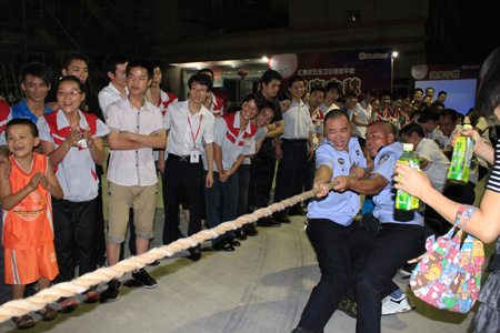 游園活動第一個項目是激情澎湃的拔河比賽,各中心代表隊共八支隊伍每一隊隊員都摩拳擦掌,拉拉隊員也站滿了廣場為隊員吶喊助威,近一個小時的激烈的角逐,最終勝出冠軍行政中心、亞軍廣州分公司、季軍制造中心2隊,拔河比賽充分展示了團隊的力量。