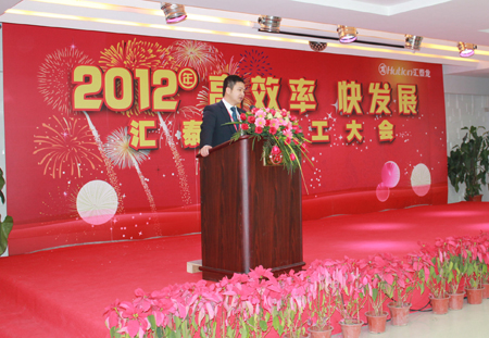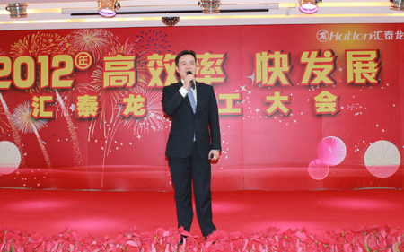 在徐總講話結束后,董事長陳鴻填先生也受邀發表了演講。陳董首先對匯泰龍公司全體人員2011年共同努力取得的成績表示了肯定,對公司2012年在各項資源投入作出說明,提出了2012年第二個效率年“高效率 快發展“的企業文化主題和新的定義,提出了全體匯泰龍人保持激情的重要性,最后,陳董對公司的團隊建設、業績、營銷等方面提出了展望。