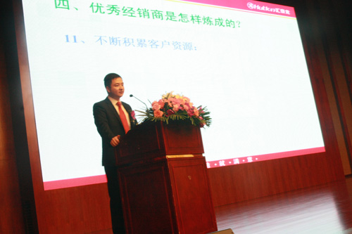 匯泰龍公司總經(jīng)理徐振忠先生作了主題為《回顧2011,挑戰(zhàn)2012》重要的工作報(bào)告,報(bào)告內(nèi)容分為以下七個(gè)重要的部分:一、回顧2011年總公司主要工作計(jì)劃的執(zhí)行情況;二、回顧2011年經(jīng)銷商"如何實(shí)現(xiàn)優(yōu)秀銷售業(yè)績"執(zhí)行情況;三、效益好的經(jīng)銷商與效益一般的經(jīng)銷商區(qū)別;四、優(yōu)秀經(jīng)銷商是怎樣煉成的?五、2012年總公司的營銷思路;六、2012年總公司主要投入與規(guī)劃;七、對(duì)經(jīng)銷商的要求。徐總首先利用數(shù)據(jù)向大家展示了在總公司和全體經(jīng)銷商共同努力下,匯泰龍品牌取得的可喜成績,接著從生產(chǎn)能力、研發(fā)設(shè)計(jì)、物流供應(yīng)、供貨能力、品質(zhì)檢驗(yàn)、廣告投放等經(jīng)銷商十分關(guān)注的問題作了詳細(xì)的工作計(jì)劃報(bào)告,進(jìn)一步加強(qiáng)了經(jīng)銷商對(duì)公司未來產(chǎn)品生產(chǎn)、研發(fā)、品控、品牌推廣等方面的了解和信心。他還利用非常直觀的方式向大家介紹了決定經(jīng)銷效益的關(guān)鍵性因素。最后,徐總對(duì)在座的經(jīng)銷商們提出了新年度總公司對(duì)經(jīng)銷商在合作共贏、共同發(fā)展新的要求和期望。