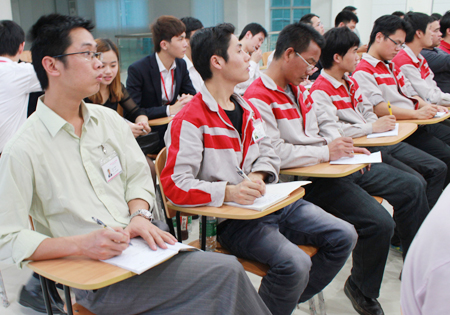 在第二天的衛(wèi)浴產(chǎn)品知識(shí)培訓(xùn)中,張總監(jiān)又從衛(wèi)浴產(chǎn)品結(jié)構(gòu)、產(chǎn)品工作原理、產(chǎn)品分析等幾個(gè)方面講解,利用圖解深度剖析每一類產(chǎn)品的工作原理,甚至包括零件中每一個(gè)墊圈的材質(zhì)、安裝方法、功能這些細(xì)節(jié)都作了講解,學(xué)員認(rèn)真地聽,認(rèn)真地記。培訓(xùn)取得了良好的培訓(xùn)效果。