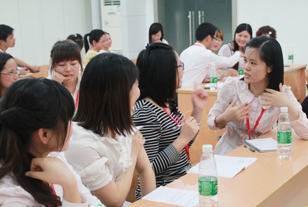 本次培訓課程總共三個小時,分為兩個部分:電話禮儀基礎知識講解和演練。講師首先講解了學習電話禮儀的重要目的、電話禮儀形象塑造、通話注意事項等等。在演練過程中,全體學員分為八個討論小組,每一組學員代表上臺當場表演,由下面的學員通過剛剛學習的禮儀知識對表演者進行點評,整個培訓課程氛圍活躍,互動性強,取得了良好的培訓效果。