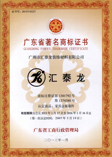 近日,廣州匯泰龍裝飾材料有限公司匯泰龍品牌通過廣東省著名商標認定委員會審核認定,被延續授予“廣東省著名商標”榮譽。這是自20073月頒發此榮譽后又一次的認定。此稱號的獲取,是匯泰龍名牌戰略不斷推進的結果,是公眾對“匯泰龍”品牌優良品質的認可,它標志著匯泰龍品牌建設又邁上了嶄新的臺階。