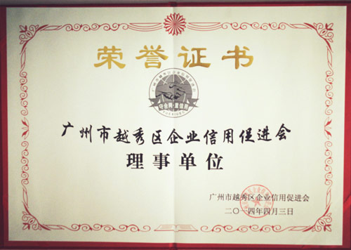 廣州市越秀區企業信用促進會理事單位榮譽證書