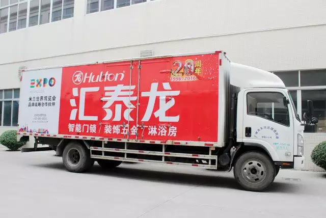 匯泰龍全部的貨車已經更新了新的廣告,畫面里有匯泰龍標準的喜慶紅色,還有公司LOGO,加上米蘭世博會標識,與匯泰龍20周年的元素融合在一起,簡潔又大氣,清新中不失優雅!