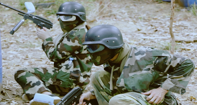 由于戰地環境惡劣,隊員們有的以大樹為掩護,有的直接趴在草叢中紋絲不同,坐等“敵人”撞上槍口,大家有自己的分工,又相互協作。突然,一聲脆想,身邊的一位戰友不幸“中彈”,旁邊的隊友立刻補充過來。對于體質較弱的女戰友,在男隊友的火力掩護下,統一躲到掩體中隱避起來,給男隊友補充“彈藥”。兩隊人馬實力相當,激烈的槍戰之后,雙方都有一定人員“傷亡”,一時難分勝負,半小時后,終因其中一隊隊員彈藥用盡,戰斗才停止,最終,以6:5的傷員人數,惜敗。