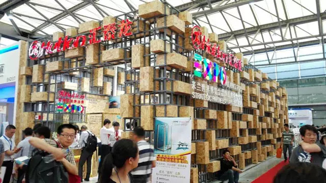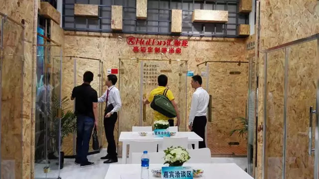 進入E6館,一個碩大的由原木盒子構成的主題展館吸引了客戶的眼球,公司的LOGO與2015年米蘭世博會色彩標志相映成輝。十幾款精致的淋浴房巧妙地展示在展館內,原木色的墻壁,燈光從木盒子的縫隙中透射出來,投影在晶瑩的玻璃上。呼吸著木頭的香味,仿佛身處在初春晌午的森林中,這個就是匯泰龍上海廚衛展“龍·自在”館。