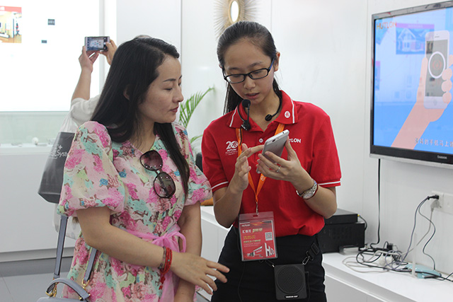 工作人員為觀眾演示APP控制功能