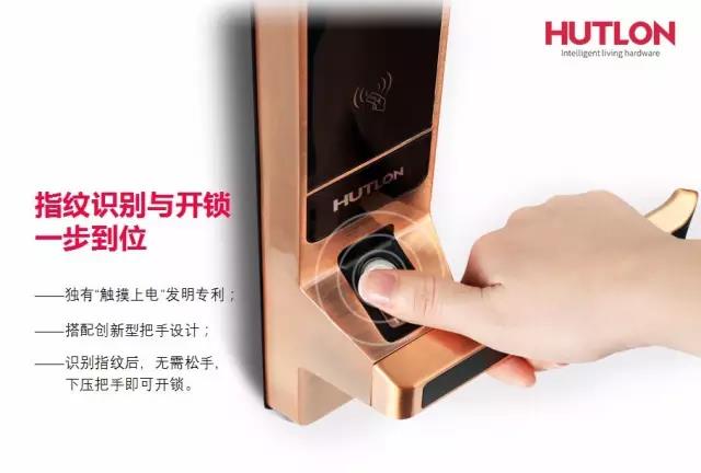以2016年推出的匯泰龍云鎖為例,獨有的“觸摸上電”發明專利,讓指紋識別更快更簡單,搭配創新型把手設計,識別指紋后,無需松手,下壓把手即可開鎖,指紋識別與開鎖一步到位。