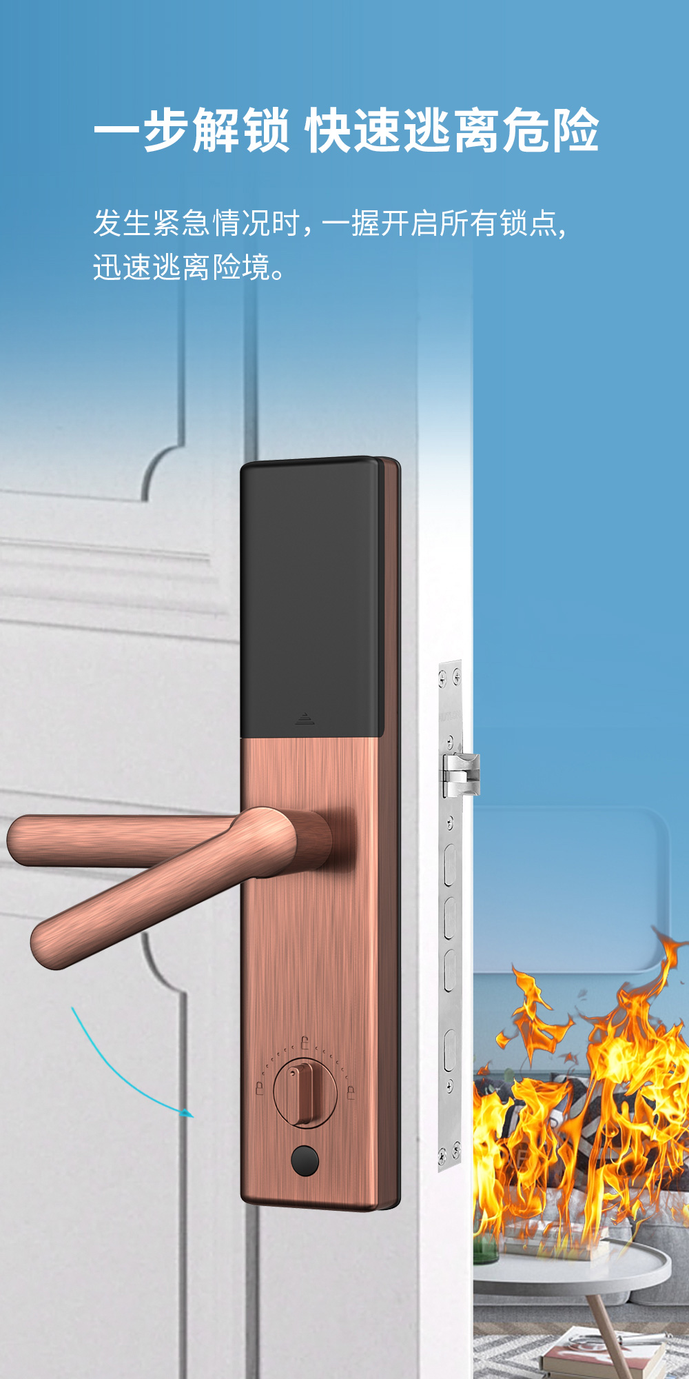 支持指紋、密碼、感應(yīng)卡、機(jī)械鑰匙四合一開(kāi)鎖方式;
