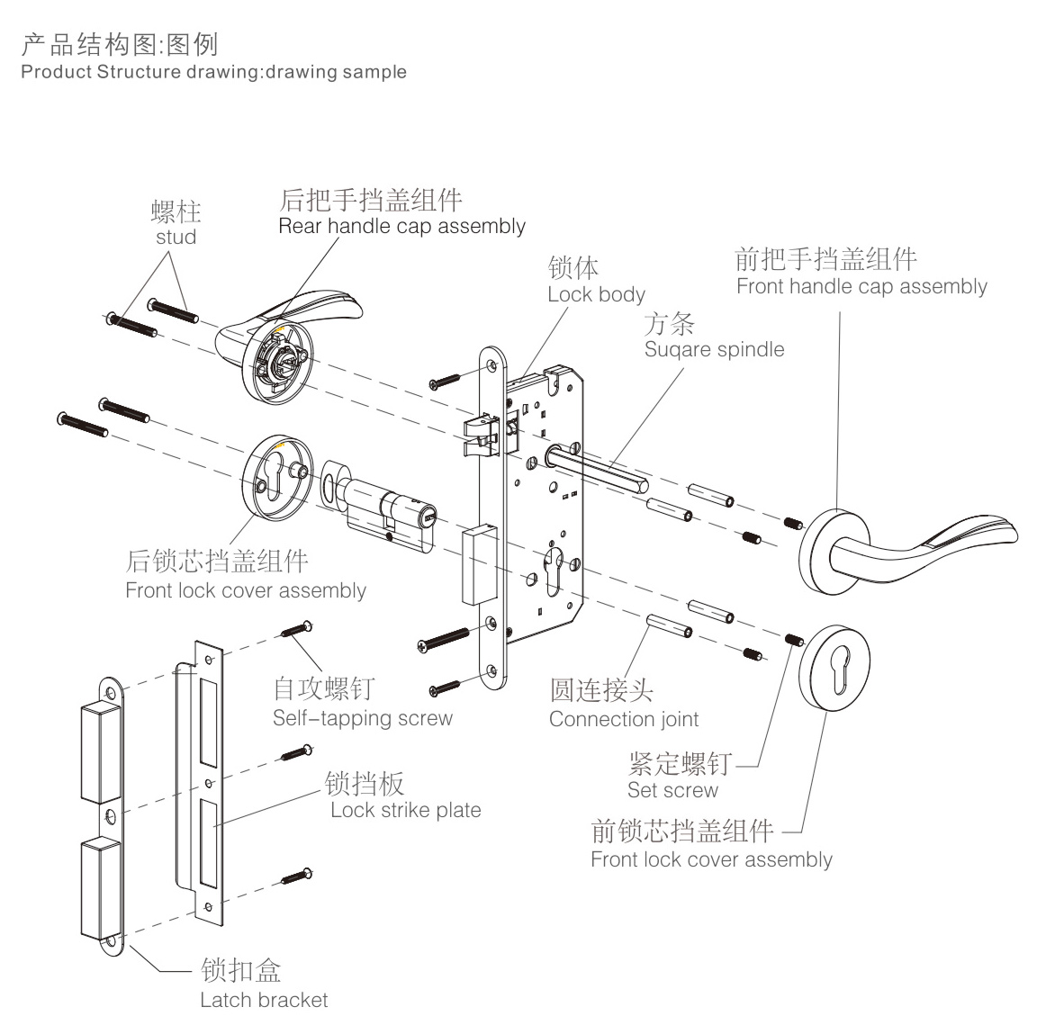 4安裝內(nèi)外面板,使把手轉(zhuǎn)動(dòng)順:擰緊螺釘(如上圖:E-F)。