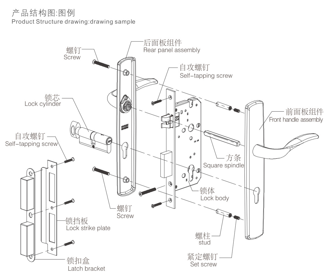6擰緊螺釘,安裝扣板及扣盒,對齊鎖體,應使鎖舌與之配合順暢,擰緊螺釘(如上圖:H)。